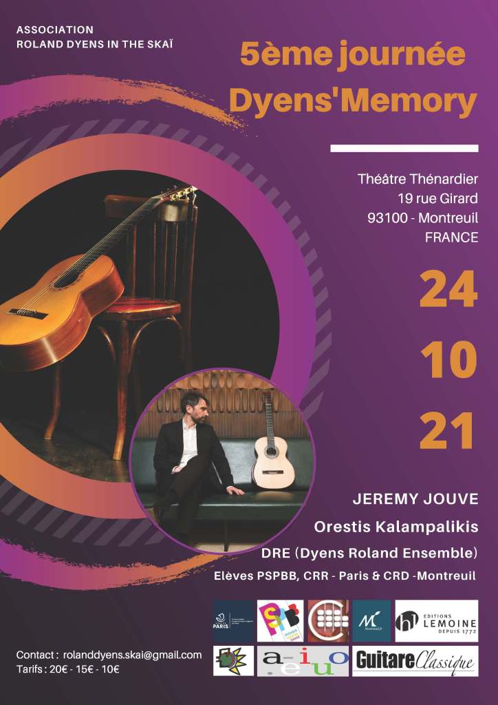 - L’Ensemble DRE (Dyens Roland Ensemble – Belgium) à l’occasion de la sortie de leur CD “Roland”. Compositions pour guitare solo de Roland Dyens (Saudade N°3, Fuoco, Flyings Wings, Songe Capricorne) interprétées par DRE pour guitare, violon, contrebasse et percussions !!!