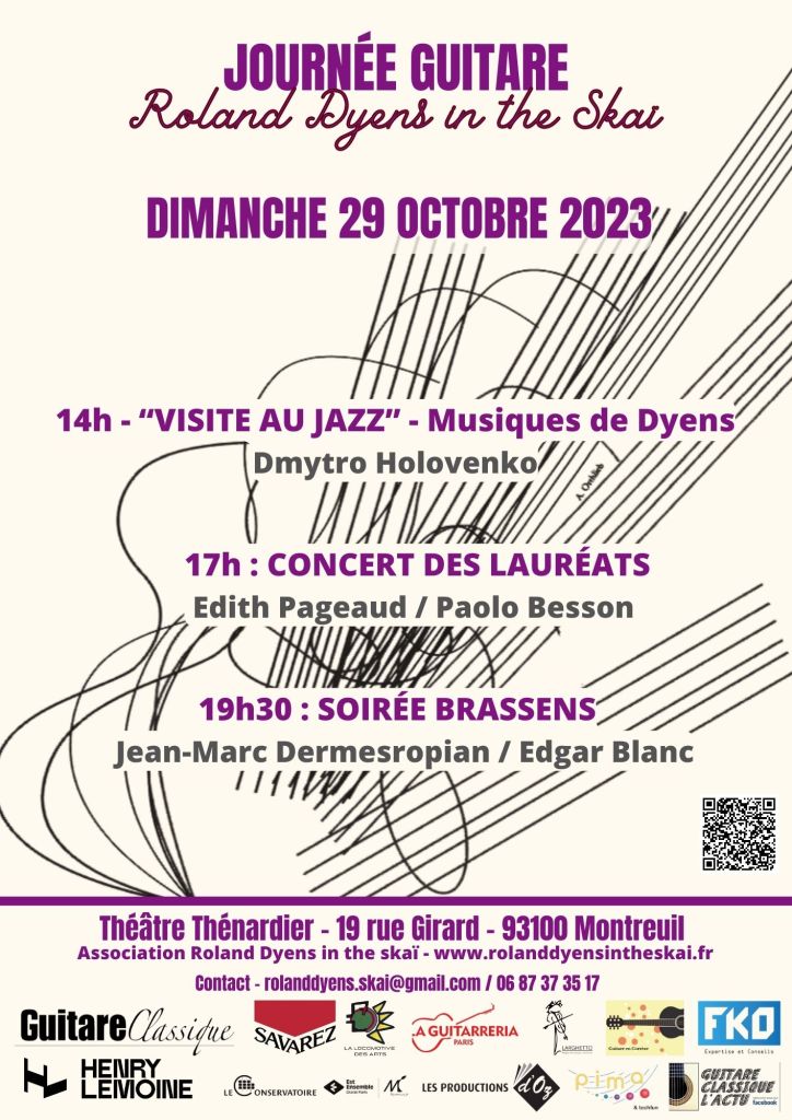 C’est un 29 octobre que deux grands de la musique nous ont quittés, Roland Dyens et Georges Brassens. Quel plus bel hommage alors que d’inviter la musique de Brassens à la Journée en hommage à Roland Dyens ? D’autant que Dyens adorait Brassens dont il a arrangé plusieurs chansons dans ses 2 CD de chansons Françaises et enregistré un CD « Hommage à Brassens » avec des variations sur cinq thèmes de Georges Brassens, pour guitare et quatuor à cordes.