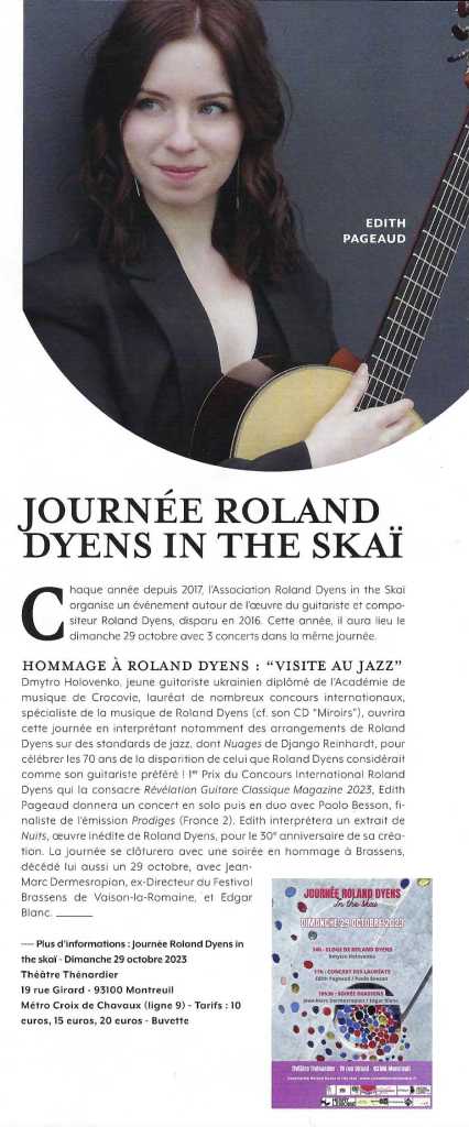 Depuis 2019, l’Association Roland Dyens in the Skaï organise chaque année un événement placé sous le signe de la musique du guitariste et compositeur Roland Dyens.