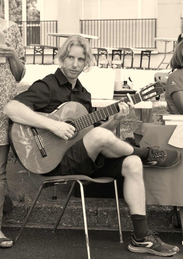 Dmytro Holovenko, jeune guitariste Ukrainien diplômé de l’Académie de musique de Cracovie et lauréat de nombreux concours internationaux, spécialiste de la musique de Roland Dyens, dont il a fait le sujet de sa thèse, ouvrira cette journée en interprétant notamment des arrangements de Dyens de grands standards de Jazz, extraits de ses CD « Night and Day » et » Nuages », et autres magnifiques compositions et arrangements que Dmytro Holovenko sait transmettre avec beaucoup de sensibilité.