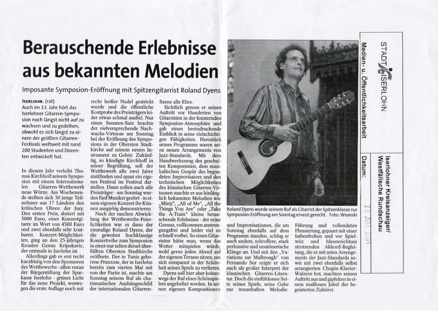 Selten ist solch ein blumig filigraner, dabei sehr intim wirkender Stil zu erleben, wie Dyens ihn für sich entwickelt hat. Schmetterlingen gleich schweben die Melodien nahezu schwerelos durch den Raum.