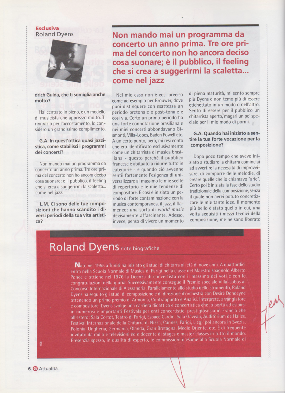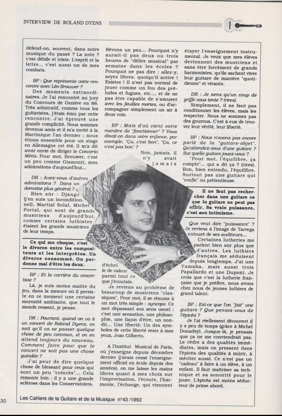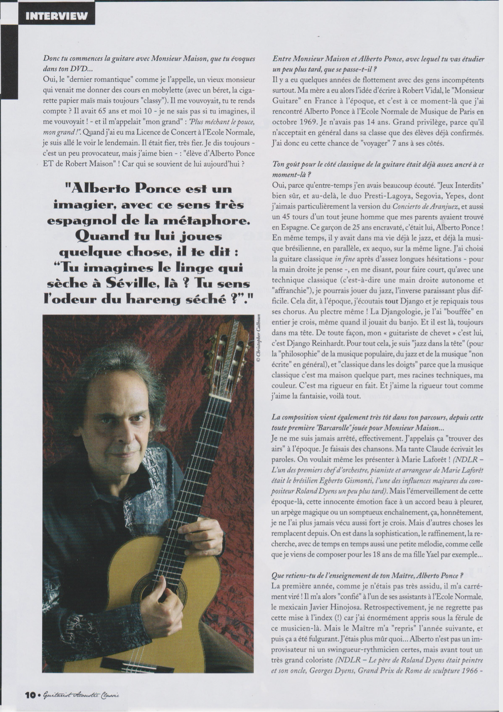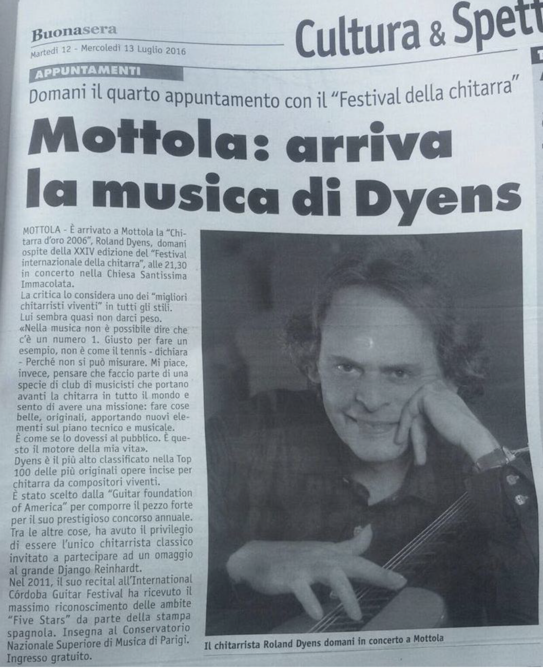 Dyens è uno dei massimi concertisti e compositori viventi per chitarra, ed emblema senza confini per lo strumento.
