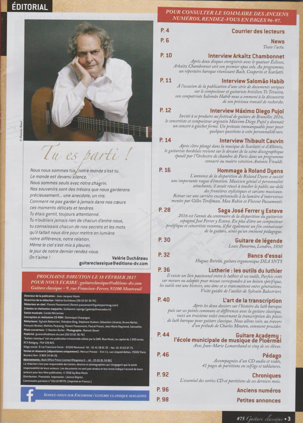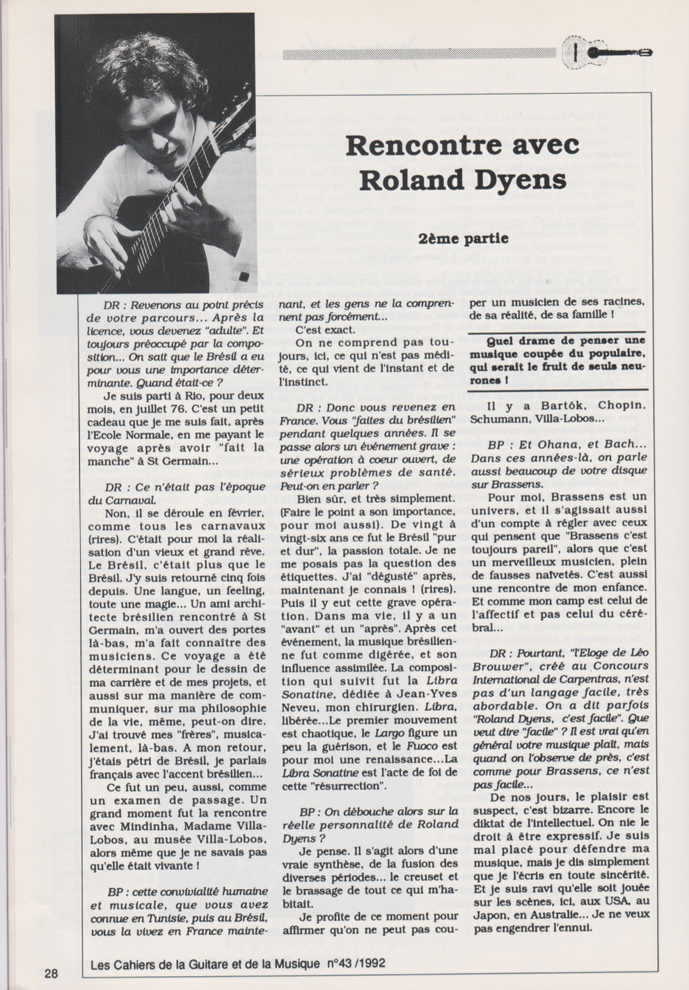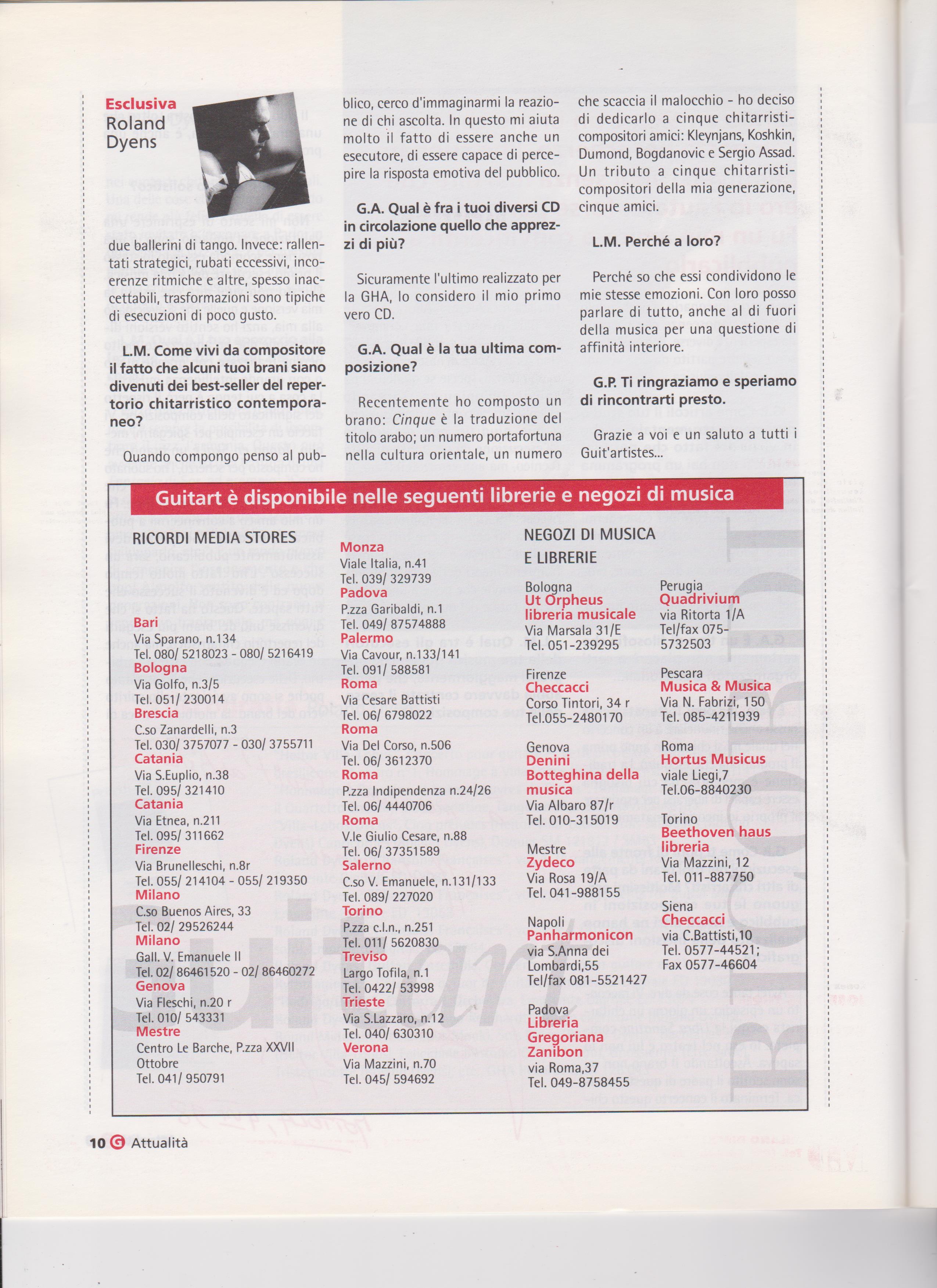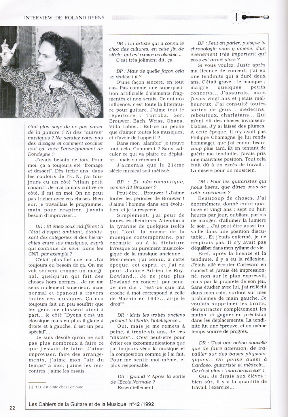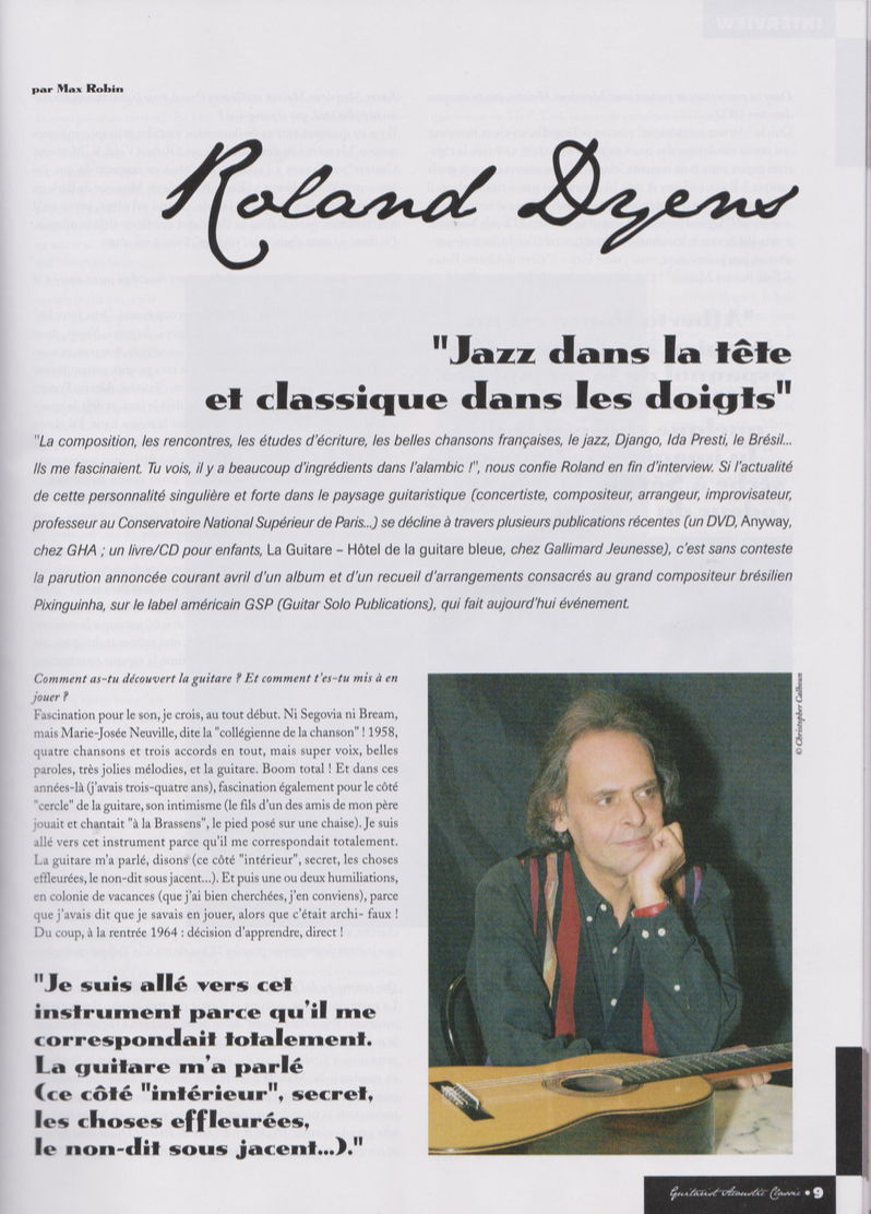 Roland Dyens is unique in the enormous contribution he has made to the contemporary guitar.