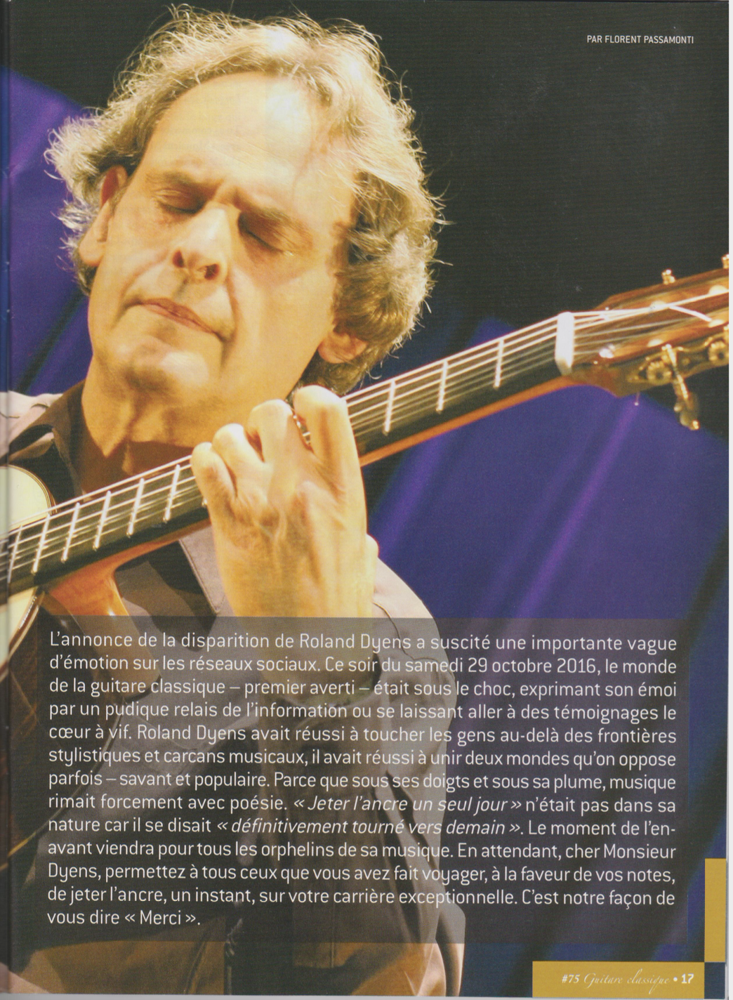 La bouleversante classe de Roland Dyens qui, en quelques notes, donna une dimension planétaire à la soirée.
