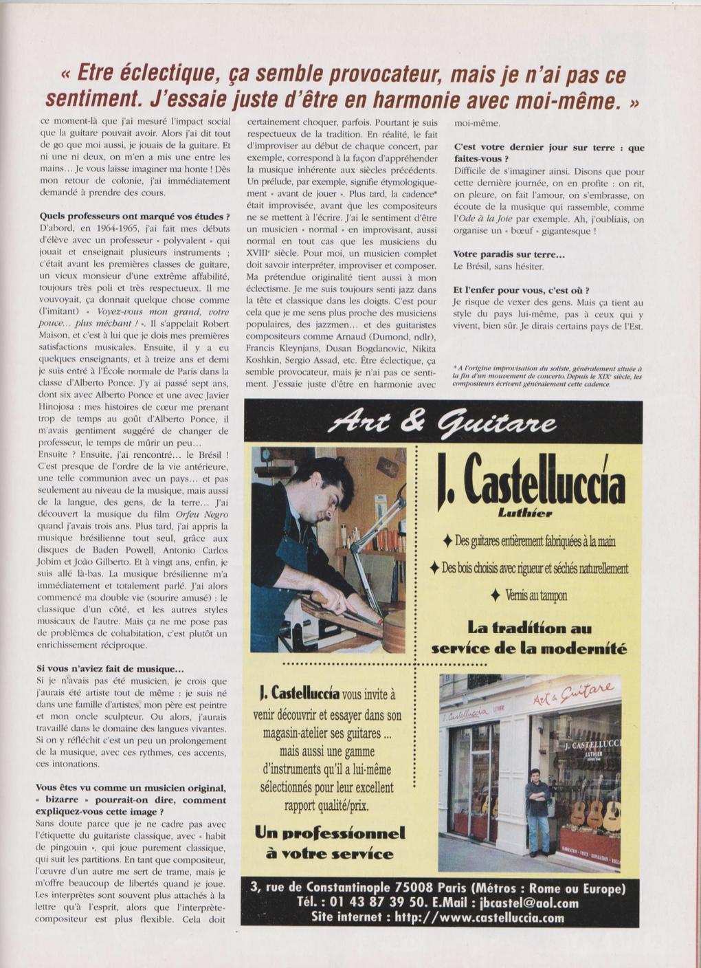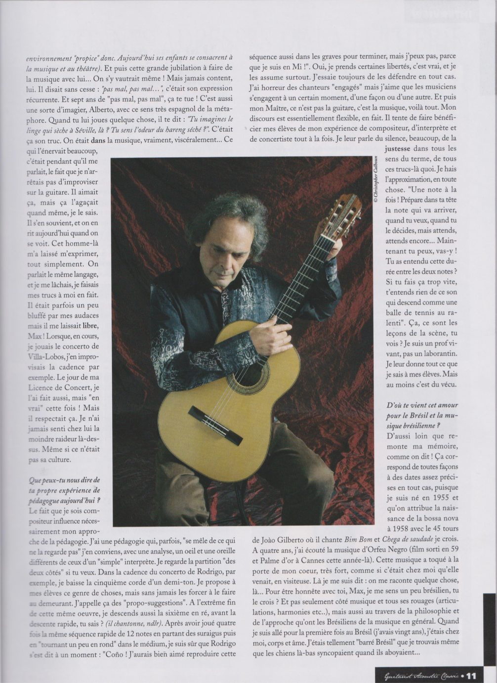 He is an exceptionnal guitarist… A member of the very small club of those who are outstanding in all three areas – improvising, interpreting and composing – as Leo Brouwer was.