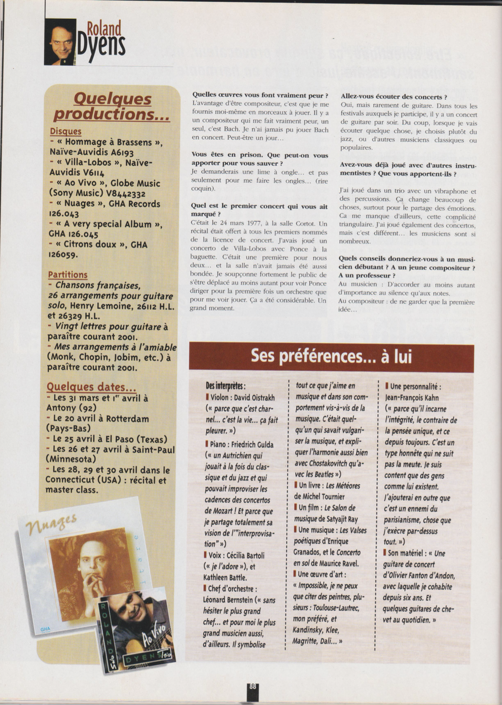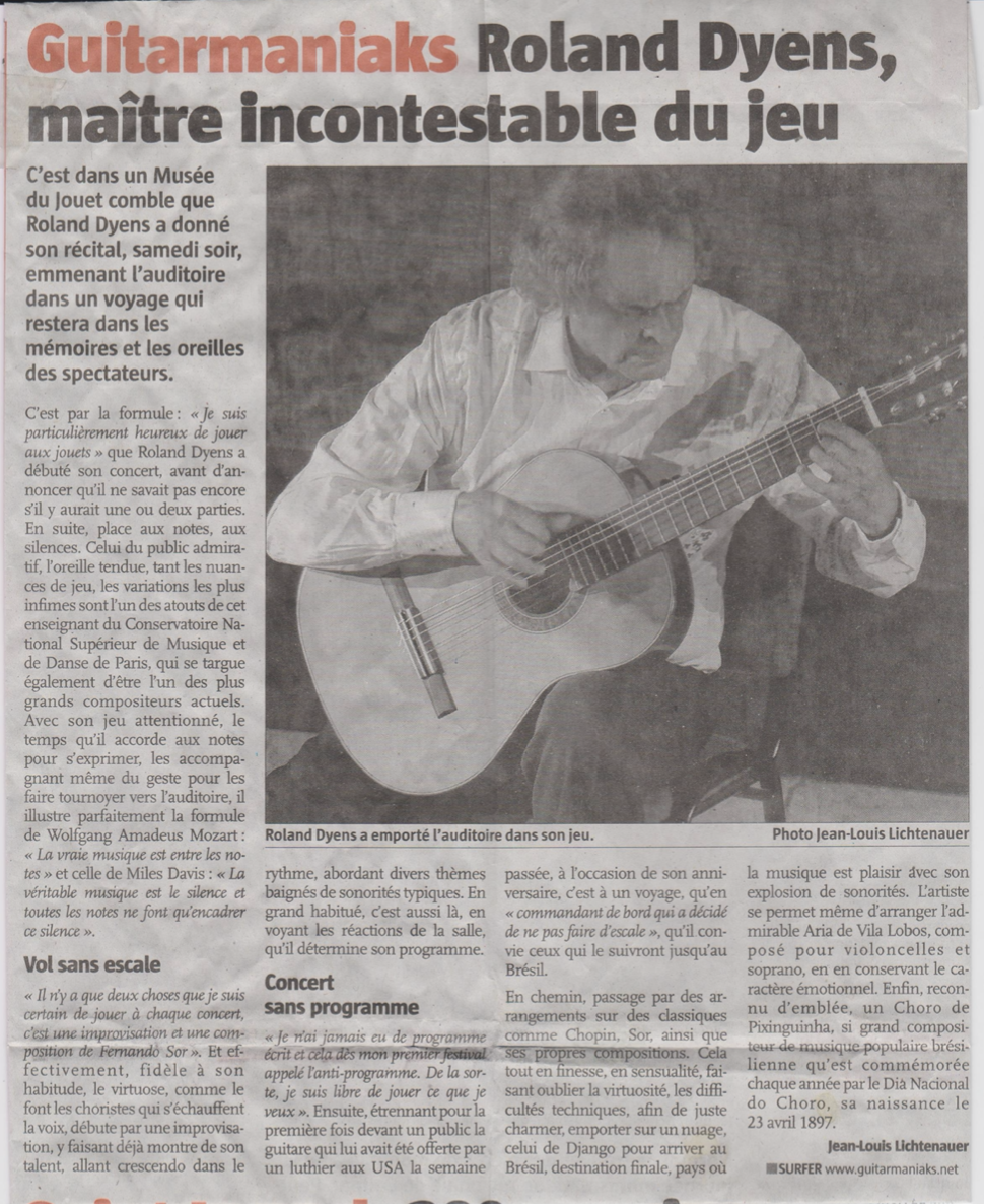 Roland Dyens est un musicien, un vrai musicien, un musicien comme je les aime… Aussi follement doué qu’enthousiaste.