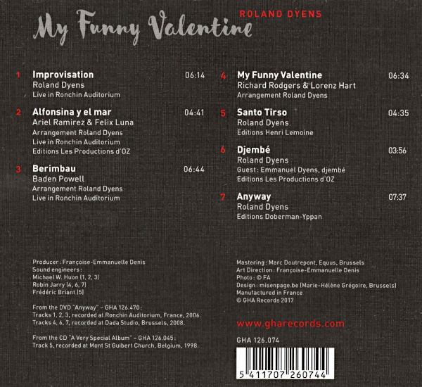 Cet album dédié à la mémoire de Roland Dyens réunit six titres qui, jusqu’à présent, n’étaient disponibles que sur son DVD « Anyway ». On y trouve également « Santo Tirso », sa contribution de compositeur-interprète au Very Special Album réalisé à l’occasion du onzième anniversaire du label GHA.