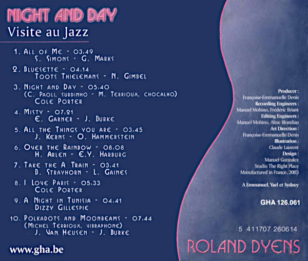 La communication authentique avec un instrument, que ce soit par le classique ou par le jazz, tout comme un accent ou une voix trainante, ne souffre pas d’imitation… le dialecte doit être la langue maternelle. Sur Night and Day, Roland Dyens prouve son fabuleux bilinguisme. Bien qu’il ait fermement imposé son talent de guitariste classique dans ses enregistrements précédents de Villa-Lobos, Satie, Sor et Weiss, il a peut-être montré davantage d’aisance dans les genres modernes, comme les arrangements de chansons de Georges Brassens, les standards de Thelonious Monk ou Django Reinhardt, et même un hommage à Frank Zappa.
