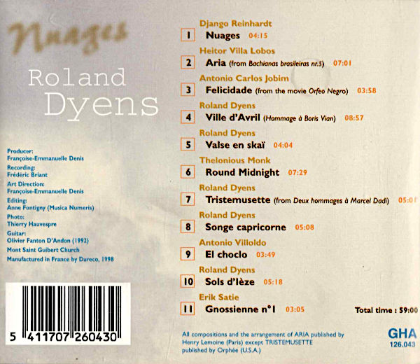 Nuages est un éloge sincère de la flexibilité en matière de musique. Je l’ai voulu respectueux de la guitare et des compositeurs, tous styles confondus, auxquels j’ai emprunté quelques notes. Mon seul désir est qu’il vous fasse plaisir.